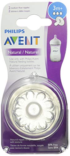 Philips Avent Natural Baby Bottle Medium Flow Nipple 3M+, One Size, 2 Count